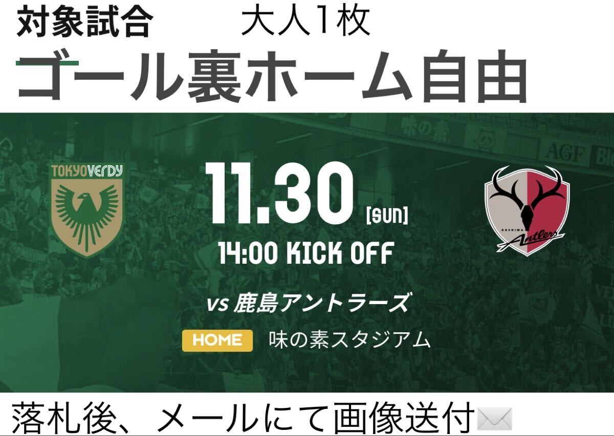 - 東京ヴェルディ 対 鹿島アントラーズ ホーム ゴール裏自由 大人1枚 味の素スタジアム 落札後 メールにてPDF送付 Jリーグ チケット
