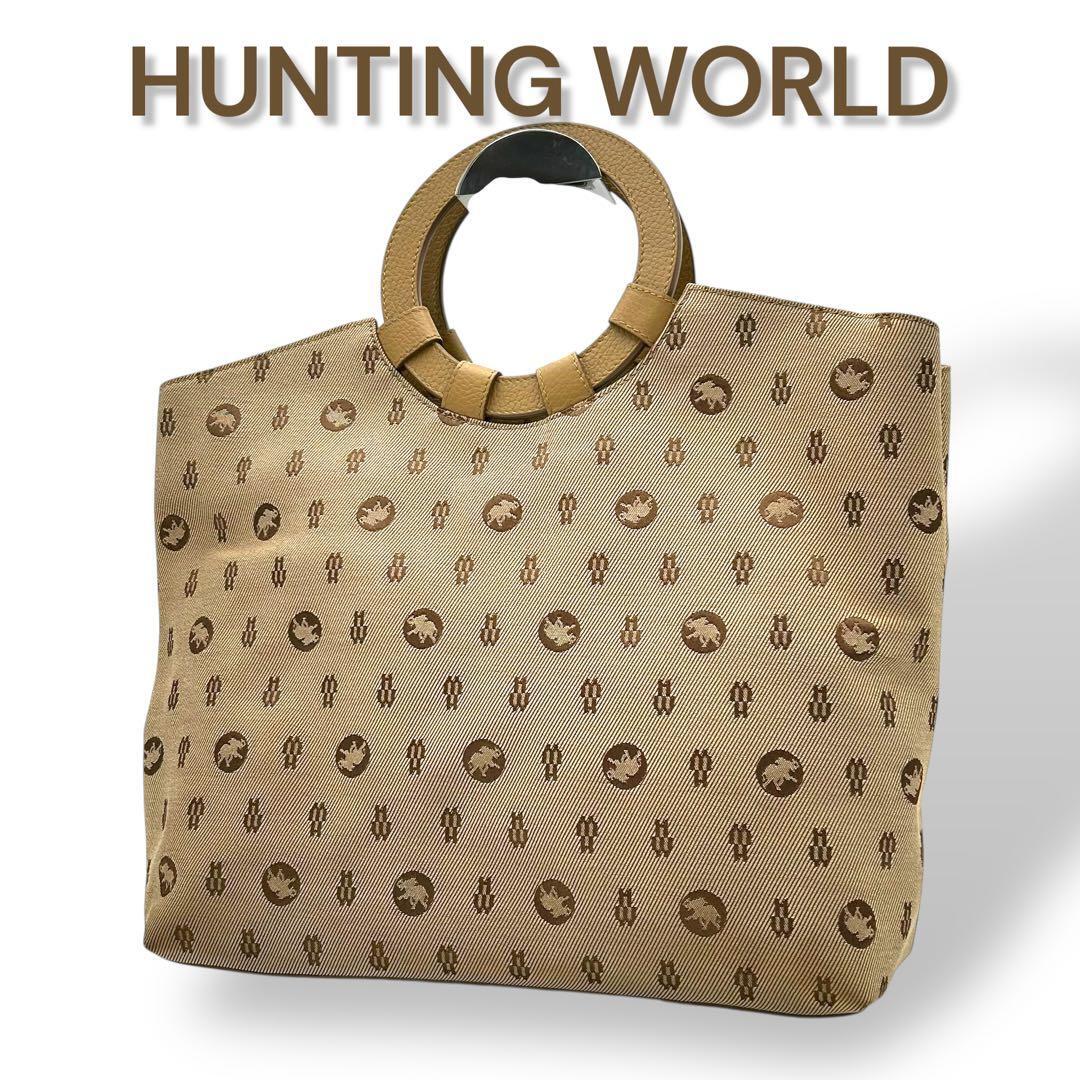 - 【希少】 HUNTING WORLD ハンティングワールド ベージュ トートバッグ レザー 切り替え A4収納可 取っ手レザー エレファント 大人気