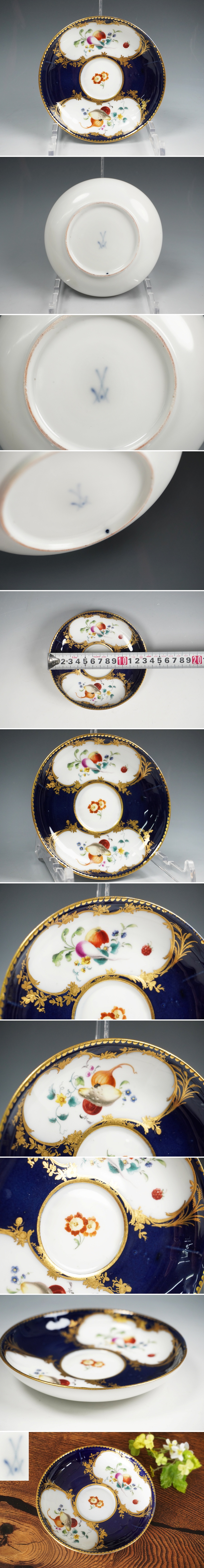 > MEISSEN マイセン 1760 - 1770年頃 コバルトブルー フラワー フルーツ 野菜 金彩 カルトゥーシュ ソーサー 皿 本物保証品
