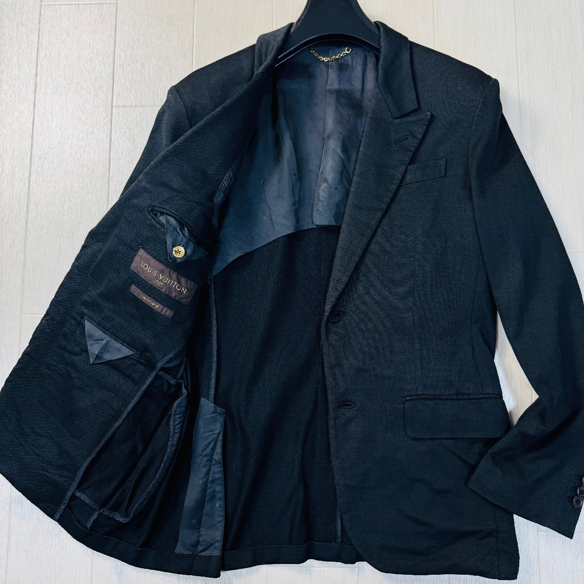 > 美品/48 L相当★ルイヴィトン LOUIS VUITTON 裏地モノグラム テーラード ジャケット シングル ブレザー LV刺繍 ゴールド金具 メンズ 黒