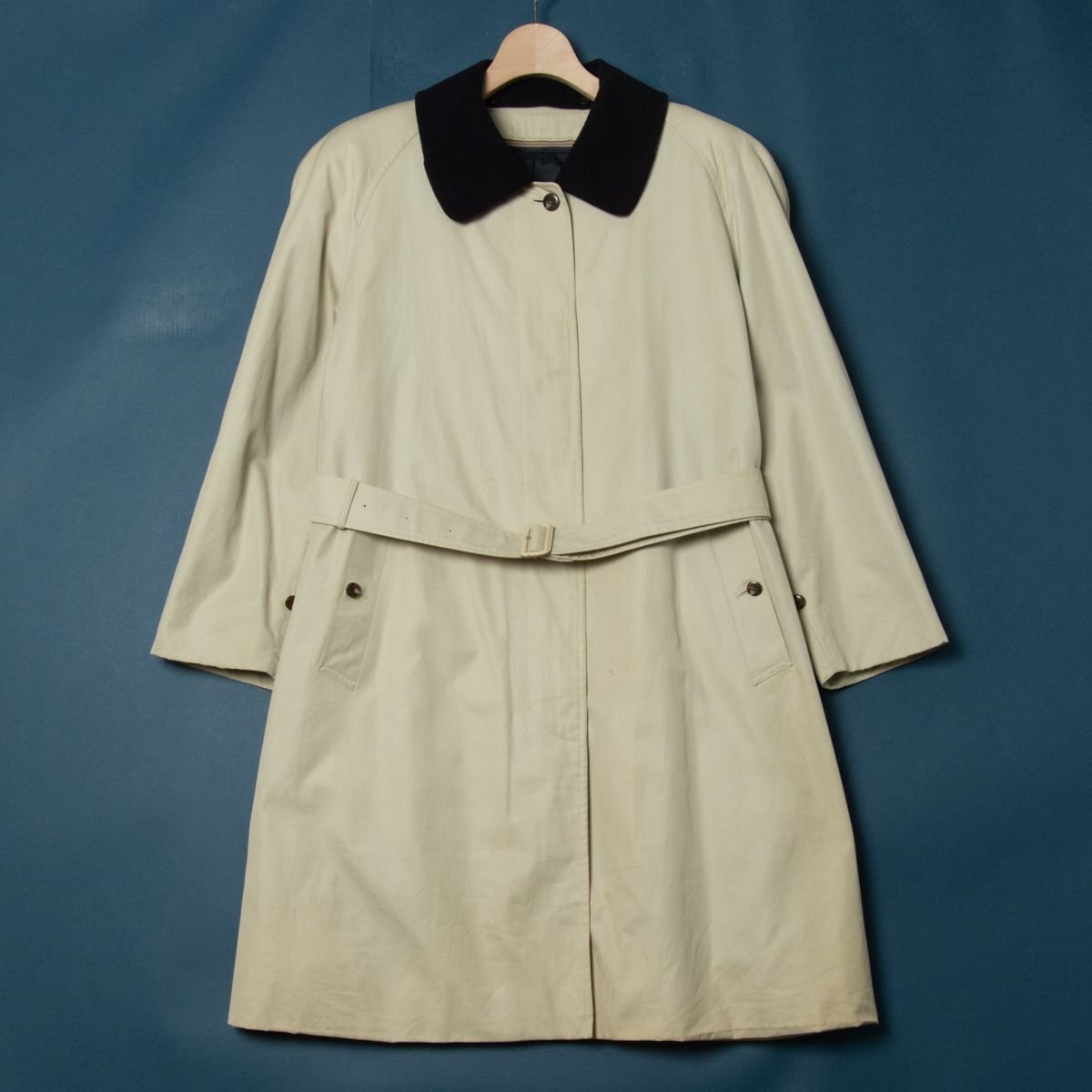 - 【1円スタート】Burberrys バーバリー ライナー付ステンカラーコート 一枚袖 バルマカーンコート 15BR 肩パッド 綿 ウール ベージュ