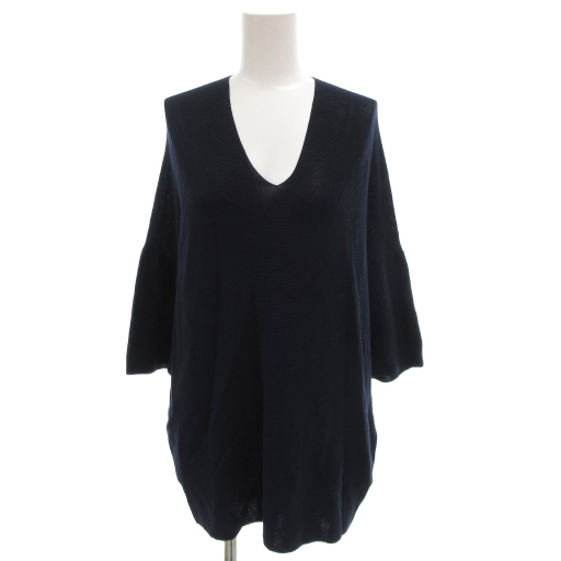 > バーニーズニューヨーク BARNEYS NEW YORK ニットカットソー 半袖 紺 ネイビー Vネック /FF ■YHS7 レディース