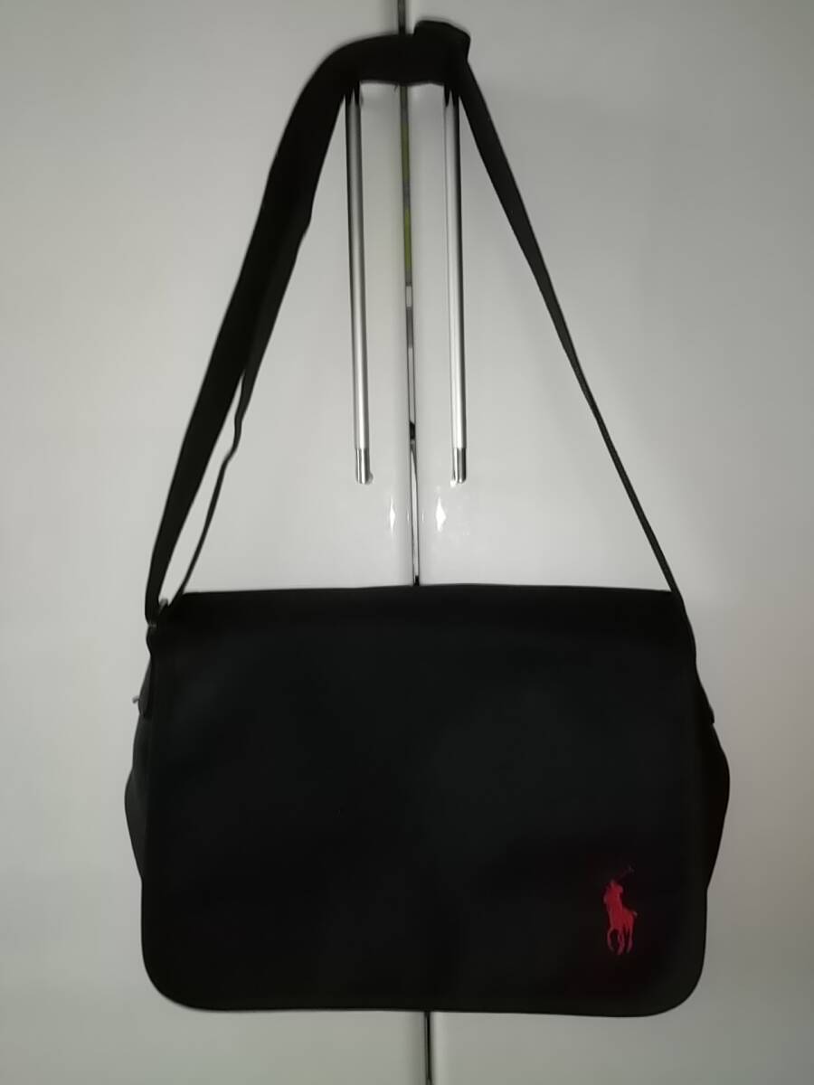 > 【ラルフローレン/ポロ】ショルダーバッグ中型 黒×ビッグポニー赤 良品 RALPH LAUREN POLO