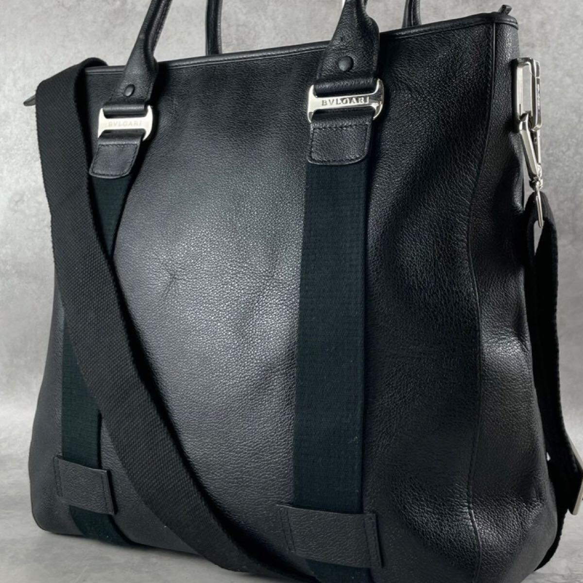 - 【美品 人気高騰】ブルガリ BVLGARI メンズ ビジネス トート ショルダー バッグ 2way レザー 本革 ブラック 黒色 A4/PC◎ 大容量