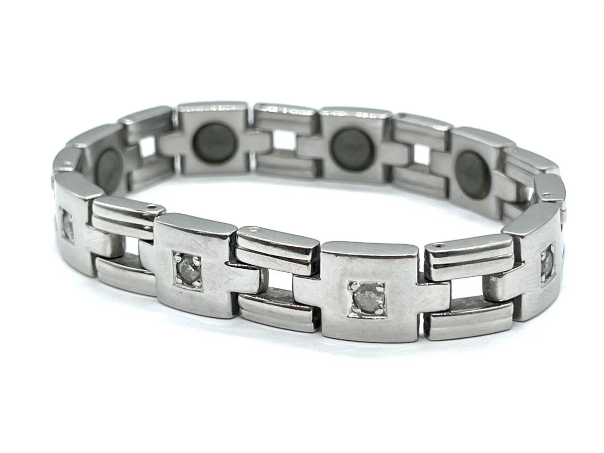 - 【R784】天然ダイヤモンド ゲルマニウム ブレスレット ヴィンテージ アクセサリー シルバー色 天然石 宝石 装飾品 日本製 b