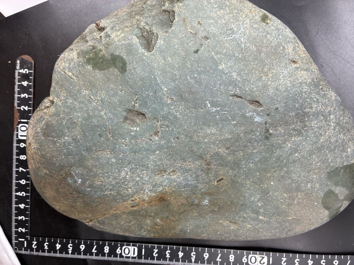 > S233 糸魚川産 ネフライト 緑 大 平 4.2kg 転石 軟玉ヒスイ 原石 天然石 ジェイド パワーストーン 観賞石 水石 自然石