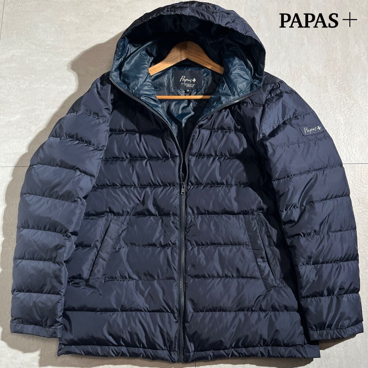 > 美品/15万 ●PAPAS+【極暖リアルダウンコート】パパスプラス ★機能美×上質間 アウター フード ロゴワッペン 軽量 ネイビーカラー M