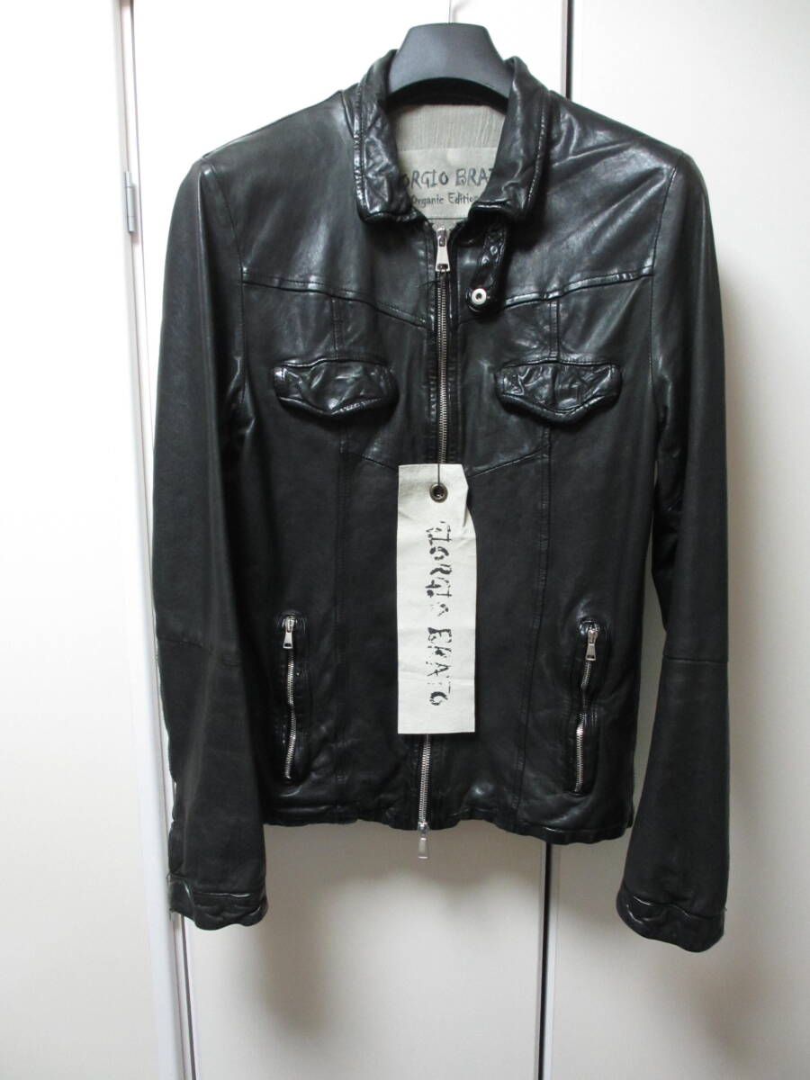 > ★ GIORGIO BRATO ジョルジオブラッド レザージャケット ダブルジップ 羊革 44 ブラック イタリア製 XS ラムレザー ブルゾン MADE IN ITALY