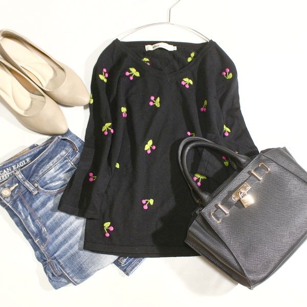 - 美品 49AV. JUNKO SHIMADA ジュンコシマダ 可愛いチェリー刺繍 ウール ニット セーター 38号 M 秋 冬 25B09