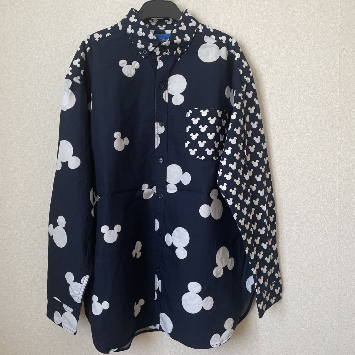 - 【新品訳あり】東京ディズニーリゾート ミッキー柄 ボタンダウン 長袖シャツ M