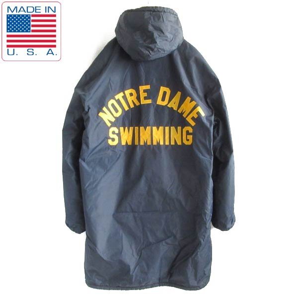 - 80s USA製 tru west ノートルダム大学カレッジ物 2段ワッペン 内ボア ベンチコート XL 紺系 ベンチウォーマー ビンテージ D148-18-0044ZTW