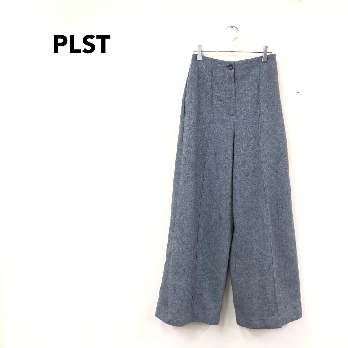 - 2O2827-K◆PLST プラステ ウール混ワイドパンツ◆sizeM グレー ウエストゴム ヘリンボーン 裏地あり キレイめカジュアル レディース