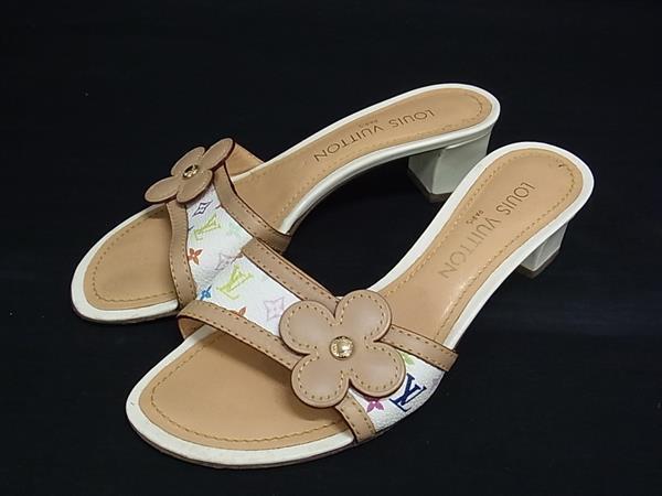 - 1円 ■美品■ LOUIS VUITTON ヴィトン モノグラムマルチカラー ヒール サンダル サイズ35 1/2(約23cm) 靴 シューズ ホワイト系 FN7569