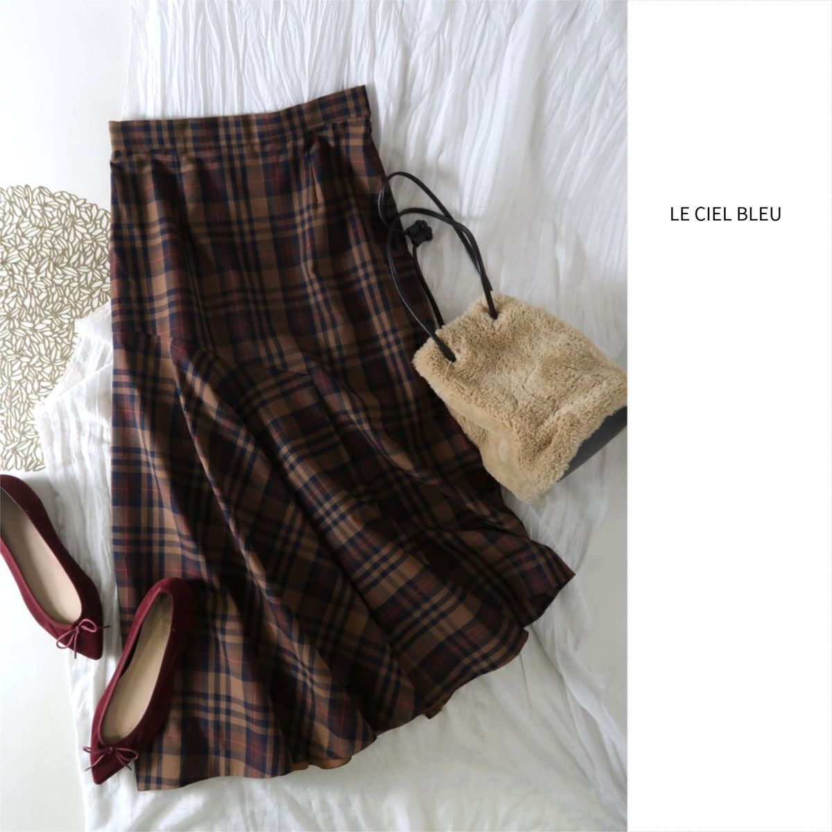 > 2.6万☆ルシェルブルー LE CIEL BLEU☆Check Half Flare Skirt/チェック ハーフフレアスカート 38サイズ 日本製☆M-B 5742