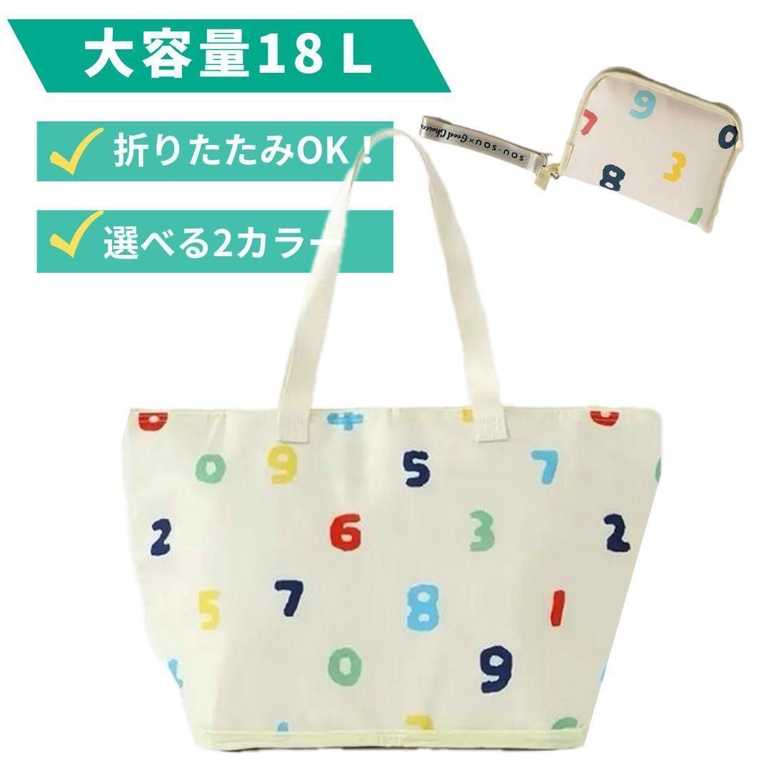 - 保冷バッグ 18L 折りたたみ 白 数字柄 大容量 トート
