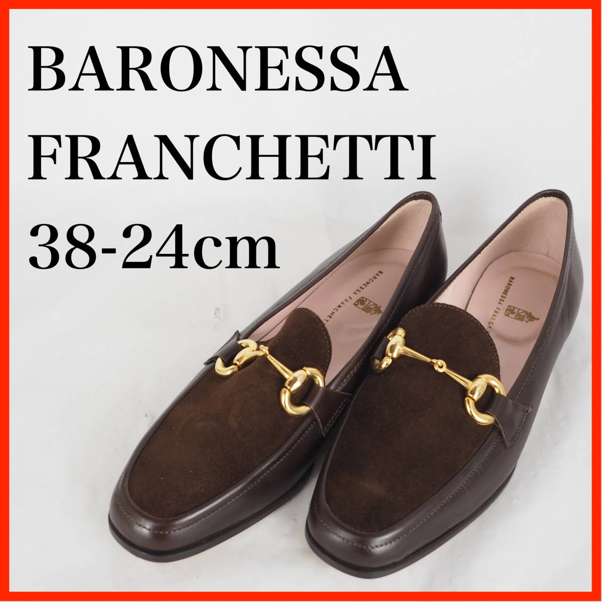 - OK6316*美品*BARONESSA FRANCHETTI*レディースローファー*38-24cm*茶