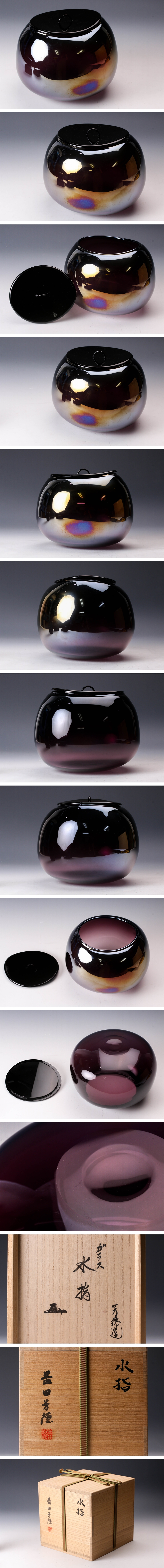 【佳香】益田芳徳 ガラス水指 裏千家十五代鵬雲斎(汎叟宗室)書付箱 塗蓋 茶道具 本物保証拍卖