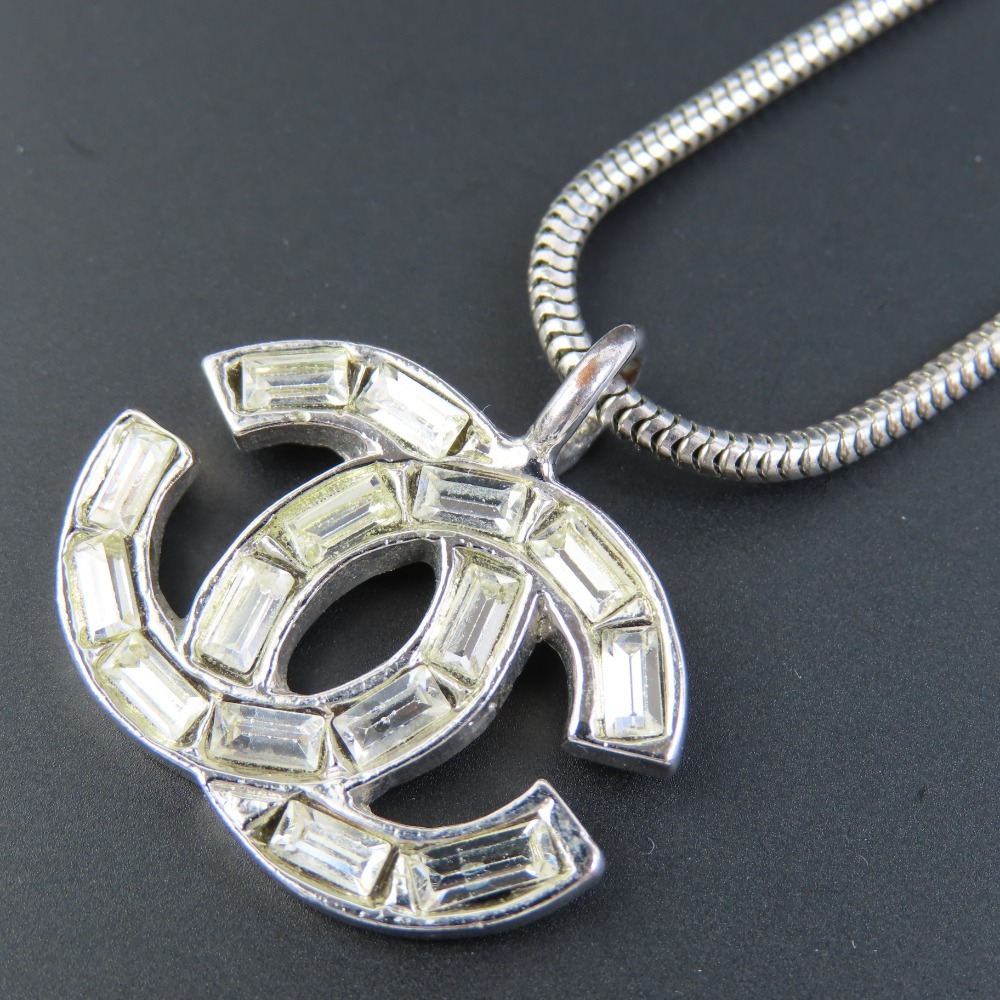 > 203465★1円スタート★CHANEL シャネル 美品 ココマーク アクセサリー ヴィンテージ ネックレス GP ラインストーン シルバー