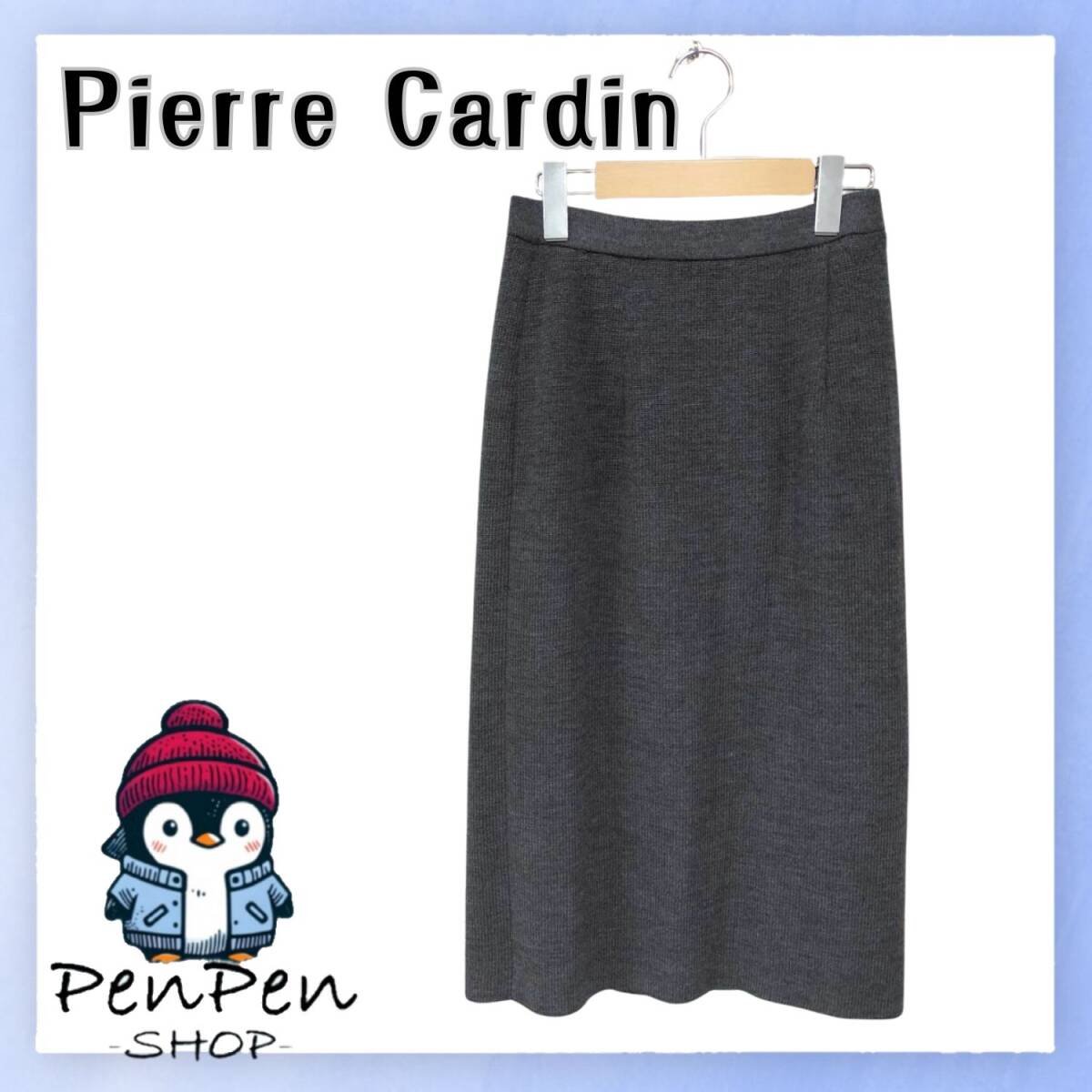 - 上質ウール100% Pierre Cardin ピエールカルダン レディース ミモレ丈スカート グレー Mサイズ 上品シルエット ウエストゴム 通勤