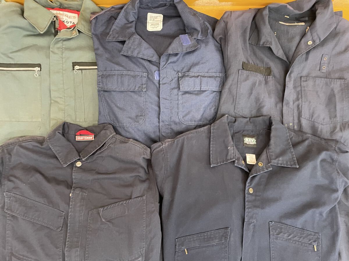 - ① 古着卸 USA 長袖 つなぎ MIX 5枚 セット まとめ売り 1円スタート 大量 卸売り アメリカ古着 ロゴ アメカジ ワーク ネイビー