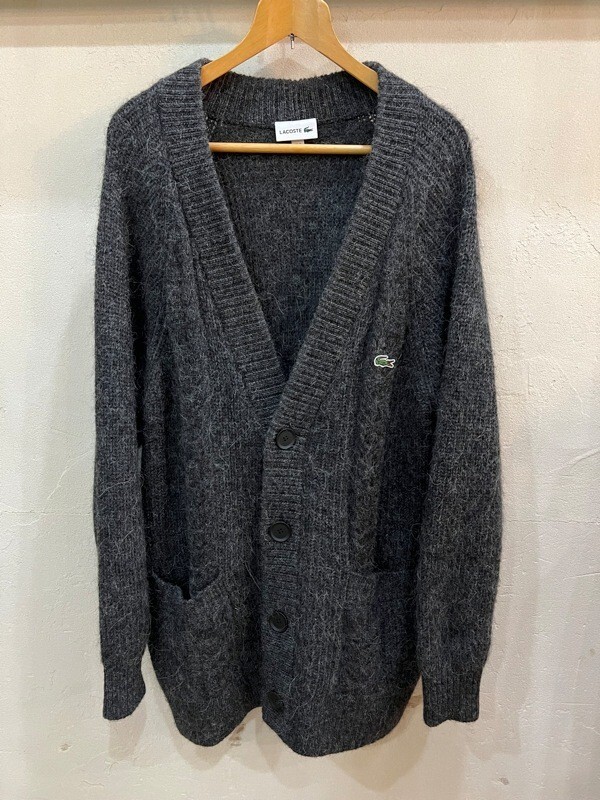 > L72★LACOSTE/ラコステ アルパカブレンドケーブルニットカーディガン メンズニットカーディガン チャコールグレー US Sサイズ ★