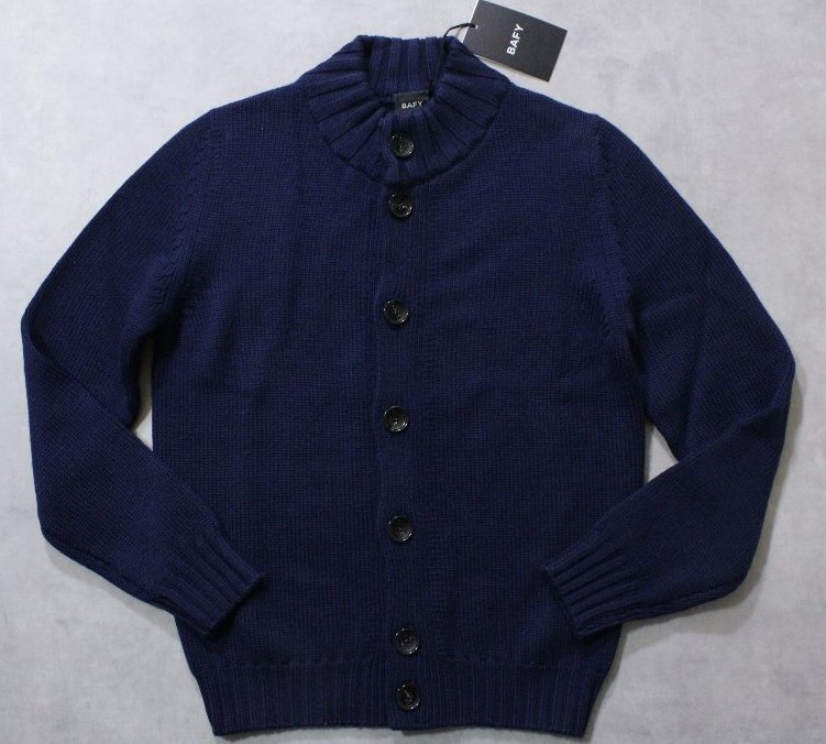 - BAFY★新品4万円程度 バフィ ミドルゲージウールのスタンドカラーカーディガン サイズ44 ネイビー無地 ZANONE CHIOTOスタイル