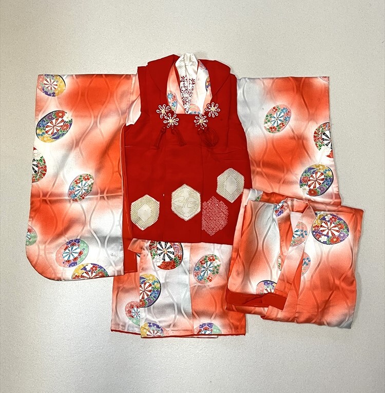 - 花とら●リサイクル着物 子供用 女児 七五三 祝い着 三歳 着物と襦袢と被布 一つ身 三つ身 251012