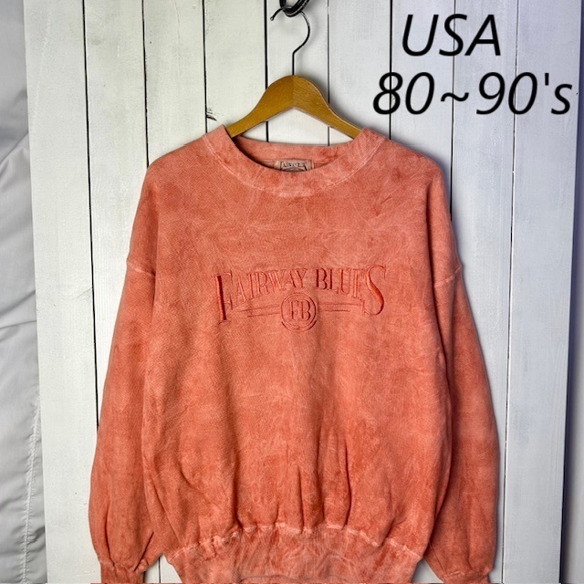 > USA古着 80s~90s USA製 タイダイムラ染め 鹿の子サーマル スウェット M~L オレンジ オールド ヴィンテージ コットン ユニセックス ●263