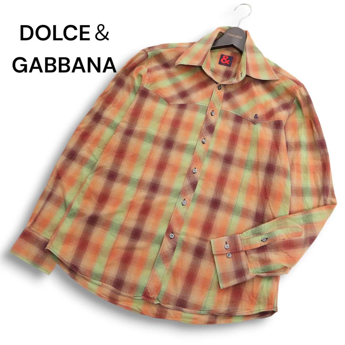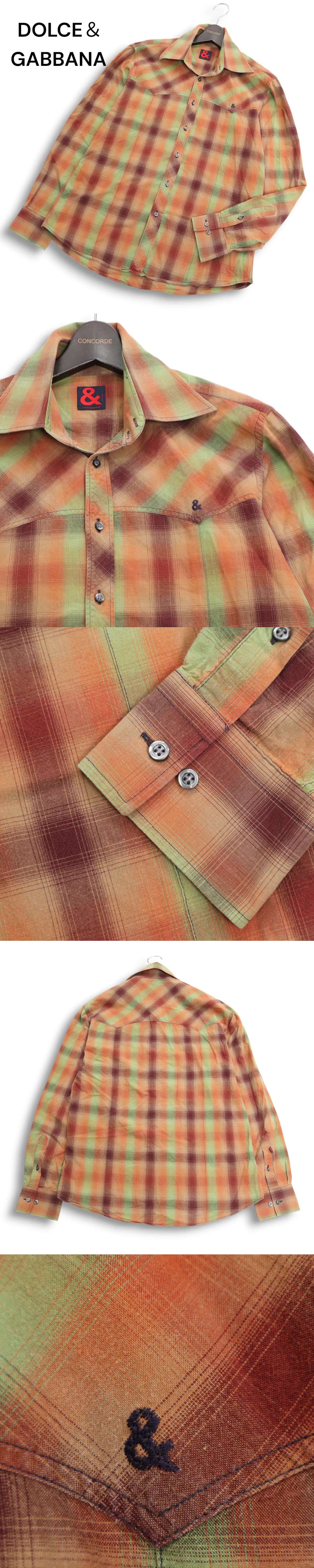 > イタリア製★ & DOLCE&GABBANA ドルチェ&ガッバーナ 通年 &刺繍★ 長袖 ウエスタン チェック シャツ Sz.52 メンズ