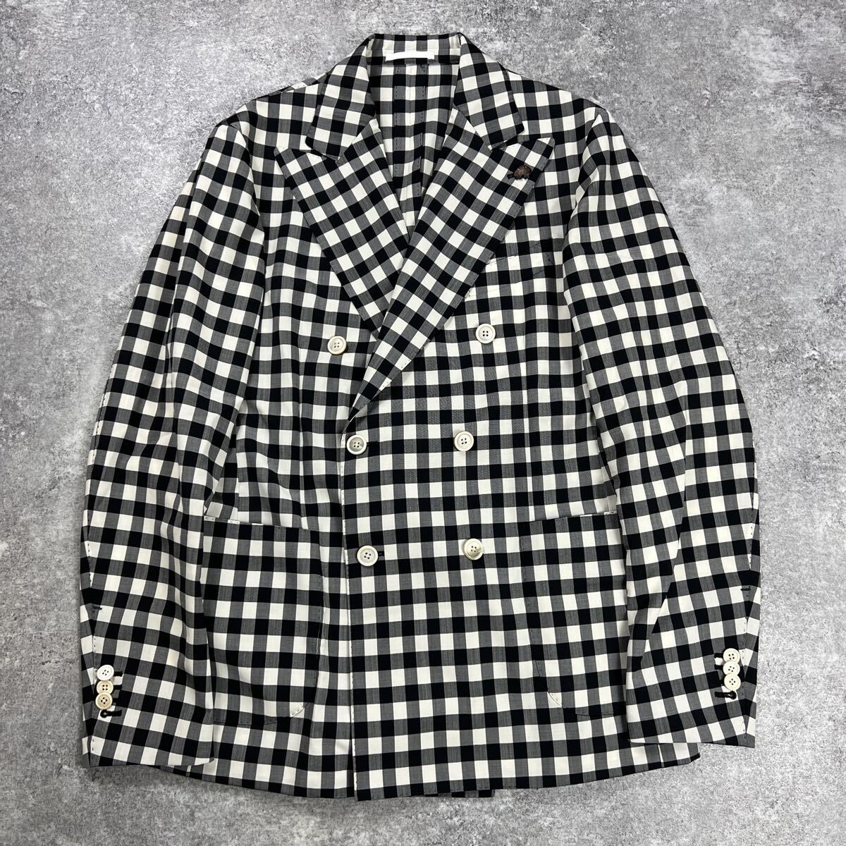 > GABRIELE PASINI ガブリエレパジーニ テーラードジャケット ギンガムチェック ホワイト ブラック ウールナイロン JA80