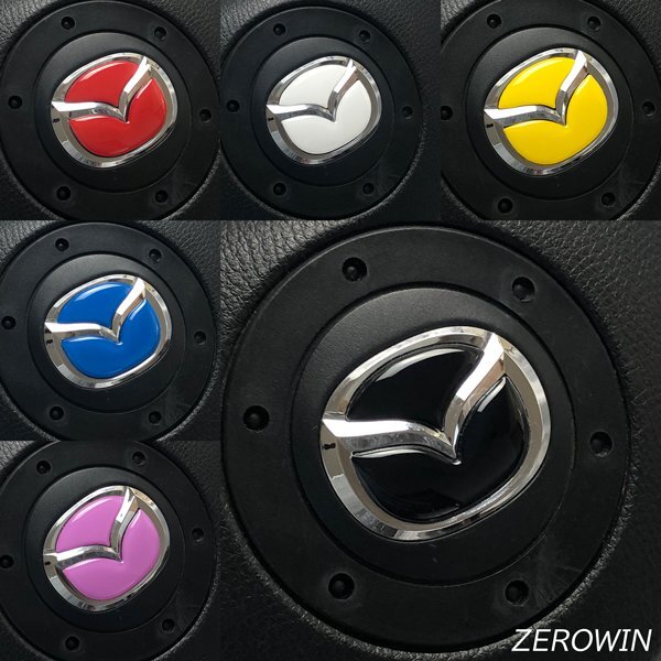 - マツダ ステアリング エンブレムシート SDH-M01 樹脂盛立体3D ハンドル ZEROWIN MAZDA 黒/赤/白/黄/青/パステルパープル/ミルキーピンク