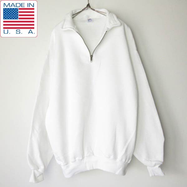 - 新品 90s USA製 JERZEES ハーフジップ スウェット XL ホワイト 白 無地 ジャージーズ クルーネック トレーナー ビンテージ D152-13-0020ZV