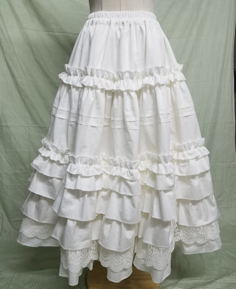- ロリータ スカート 秋冬 コットン フリル ロング丈 二枚重ね ふんわり ロリィタ パニエ コーデ ペチコート ふわふわ 可愛い ホワイト