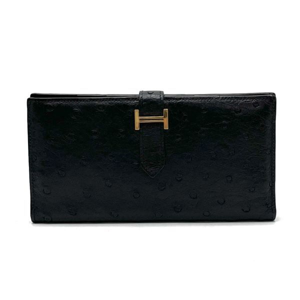 > 1円 良品 HERMES エルメス ベアン スフレ オーストリッチ 二つ折り 長財布 □J刻印 eY0852A