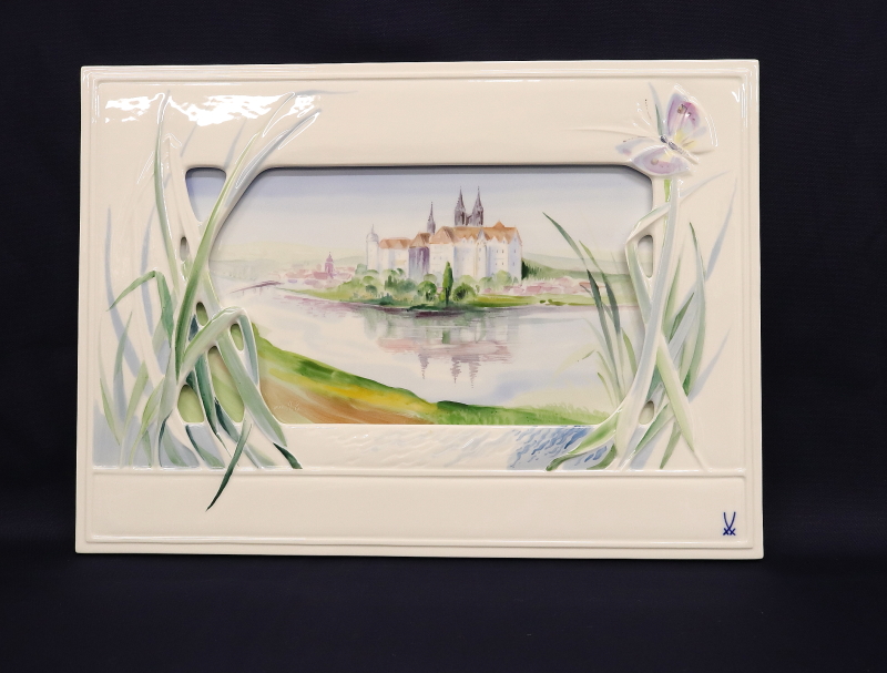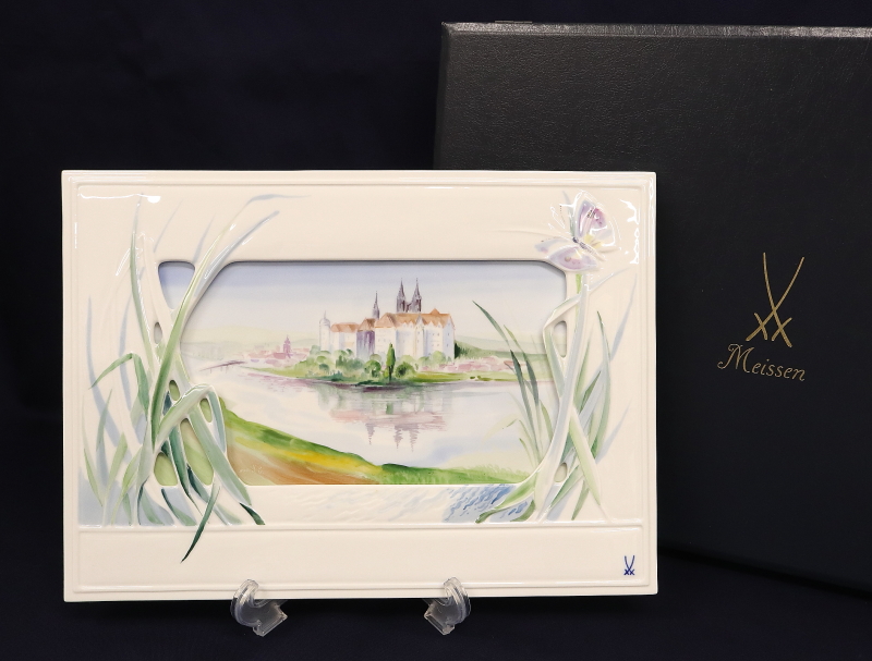- 11406■ 新品未使用 マイセン Meissen 「マイセンの風景」 陶板画