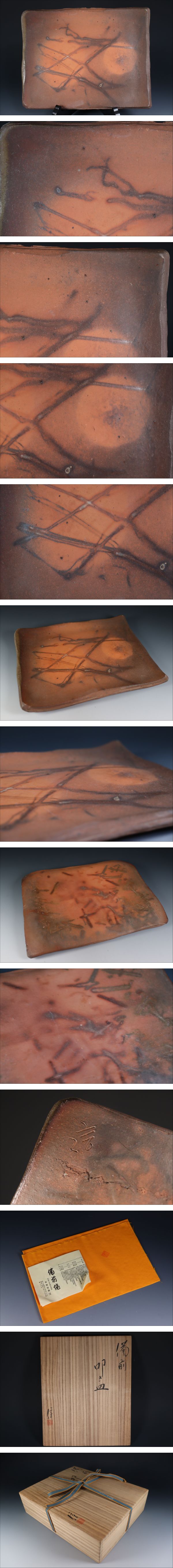 - 蔵出し品 備前焼 柴岡信義 叩き皿 皿立付