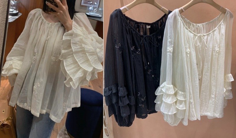 - トップス フリル 切り替え 体型カバー 着痩せ カジュアル フリー ベージュ