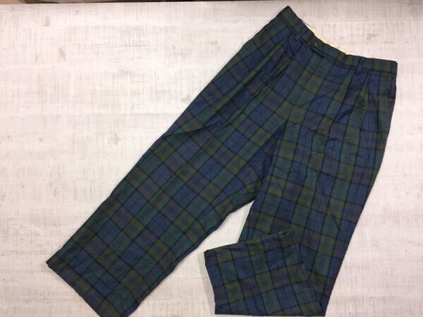 - マンシングウェア MUNSINGWEAR オールド 国産レトロ 古着 チェック タック スラックスパンツ ボトムス メンズ ウール混 日本製 88 青緑