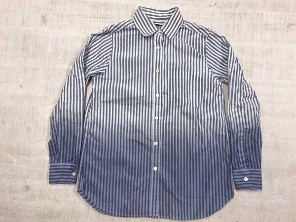 - ランズエンド LANDS' END レトロ アメカジ サーフ ストライプ グラデーション 染め Aライン 長袖シャツ レディース コットン100% S 青
