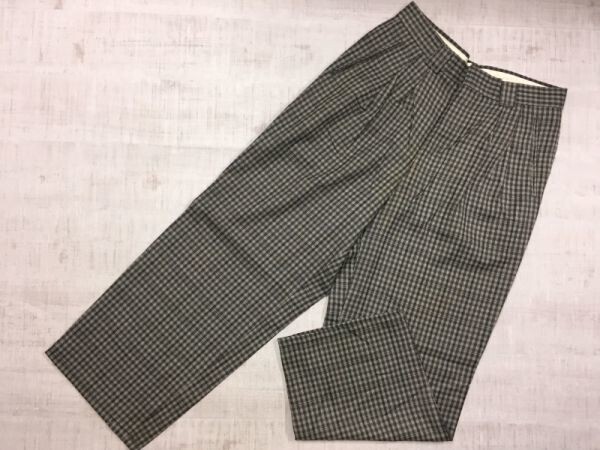 - アクセル AXEL オールド レトロ ギンガムチェック ヘリンボーン タック スラックス テーパードパンツ メンズ ウール混 日本製 85 グレー