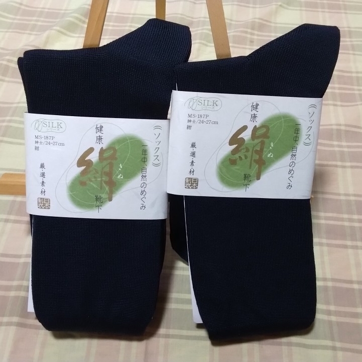 - ♪健康♪絹靴下♪厳選素材♪日本製♪2セット♪紺♪24~27cm