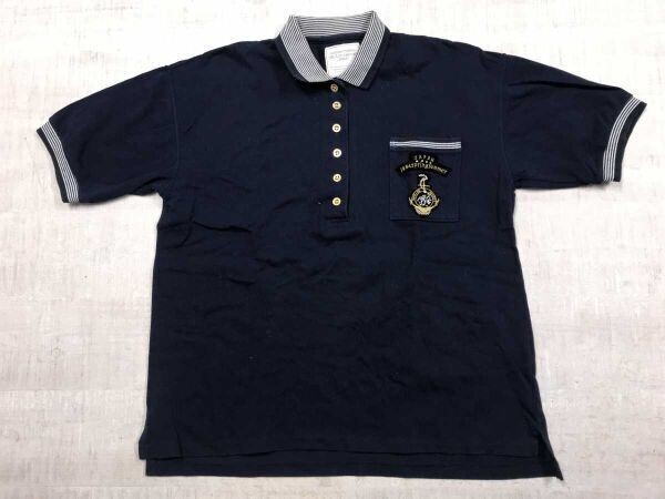 > FASHION TOWARD THE 21ST CENTURY JAPAN 日本製 1994 S/S レトロ モード 鹿の子 ラインストーン 半袖ポロシャツ レディース 紺
