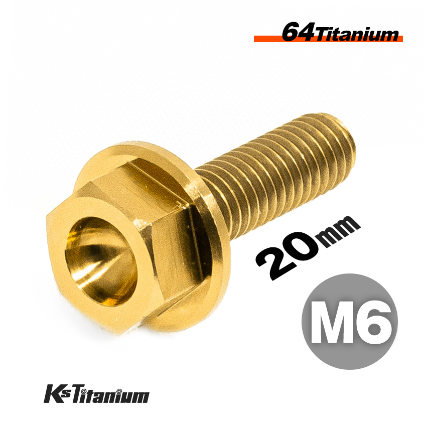 - チタンボルト M6×20 P1.0 ゴールド 64チタン フランジボルト FULLスレッド 全ネジ チタン合金 バイク パーツ 自転車 軽量化
