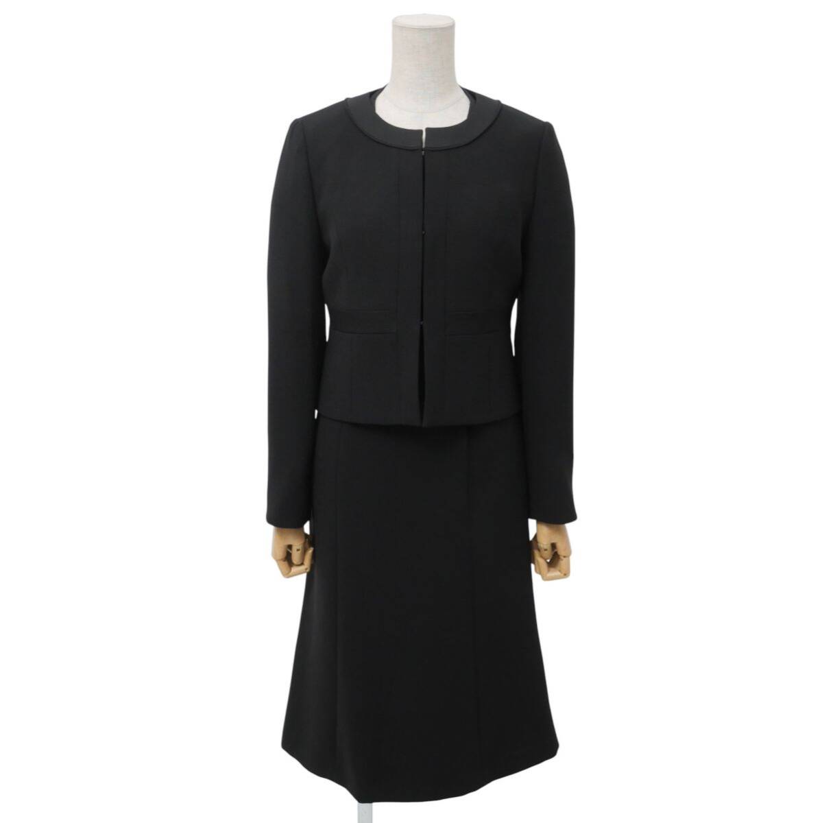 > MI2165☆東京ソワール ソワールレーヴ SOIR REVE ブラックフォーマル セットアップ 喪服 ノーカラージャケット+七分袖ワンピース 黒 7