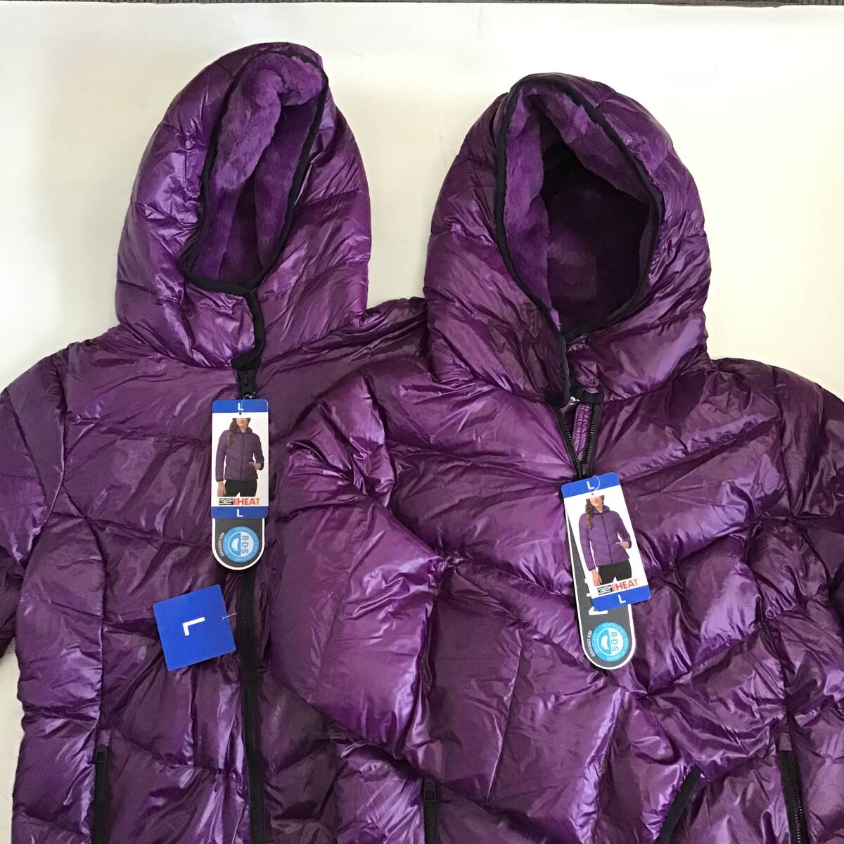 - 《 H 551 》★新品未使用★32D DOWN ジャケット 2枚まとめ レディース コストコ仕入れ 定価5778円 お買い得 アウター Lサイズ 紫 タグ付き