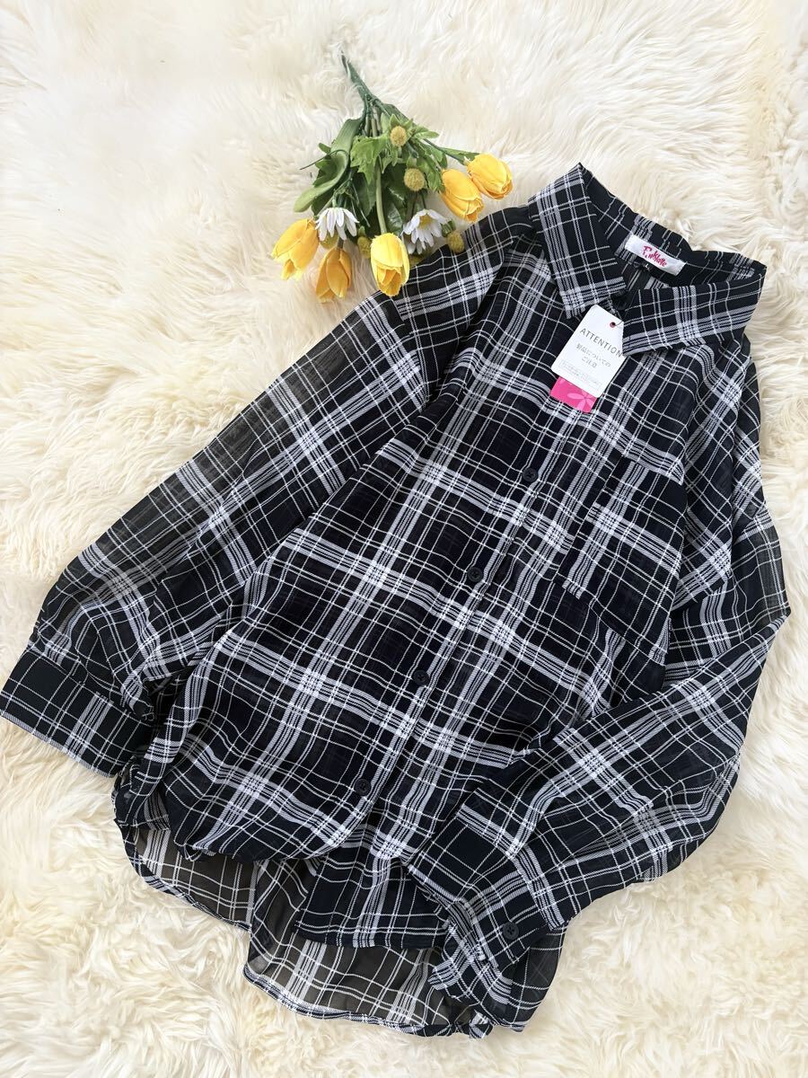 > ピンクラテ'L'160㎝'女の子'長袖シャツ'シフォン'チェック柄シャツ'女の子'トップス'小学生'シンプル'pink latte'子供服'黒