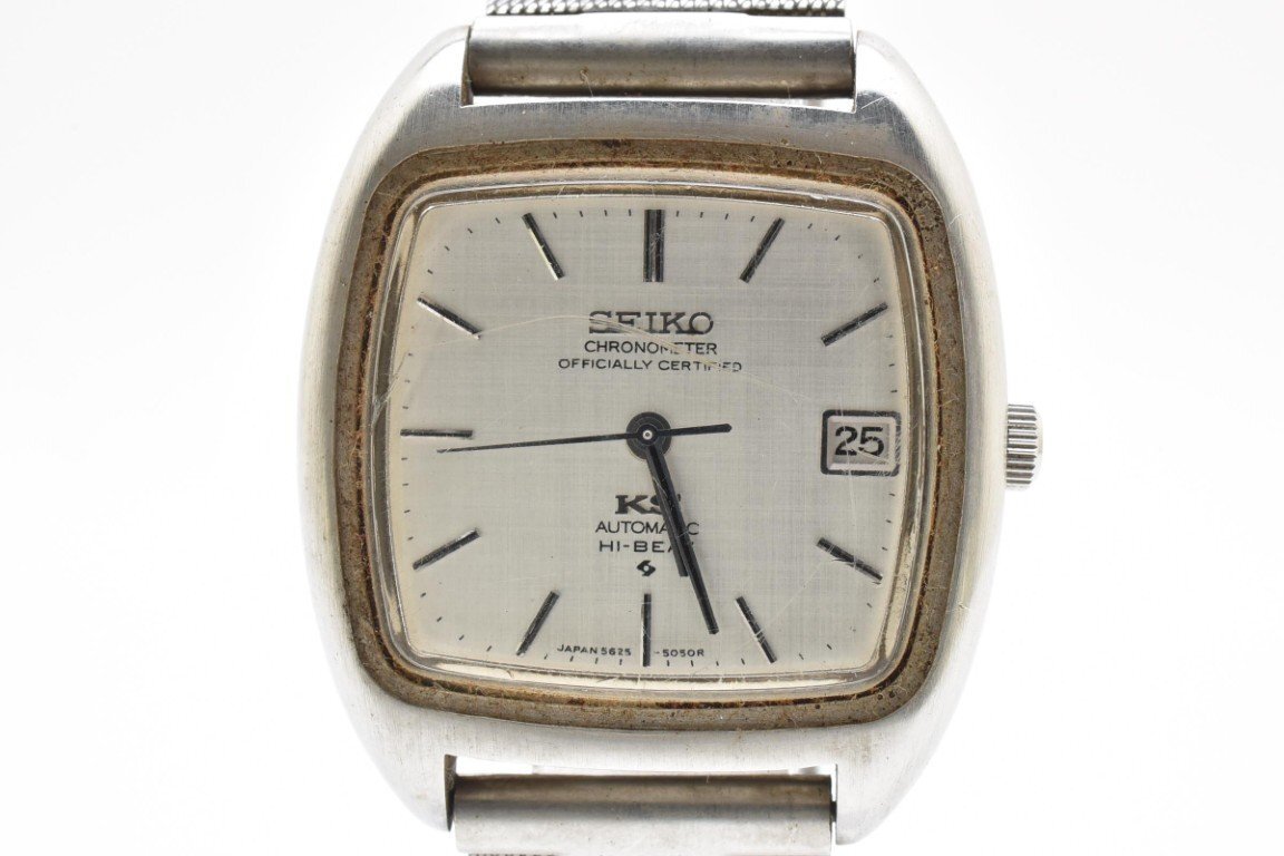 - 稼働品 SEIKO セイコー キングセイコー クロノメーター シルバー文字盤 デイト 3針 オートマチック 5625-5040