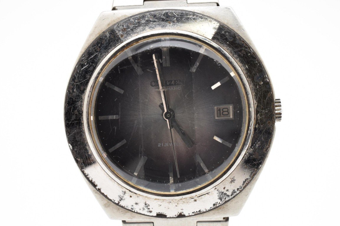 > CITIZEN シチズン 4-601009TA 円形 ラウンド 銀 シルバー Silver メンズ 腕時計 3針 デイト ネイビー文字盤 自動巻き