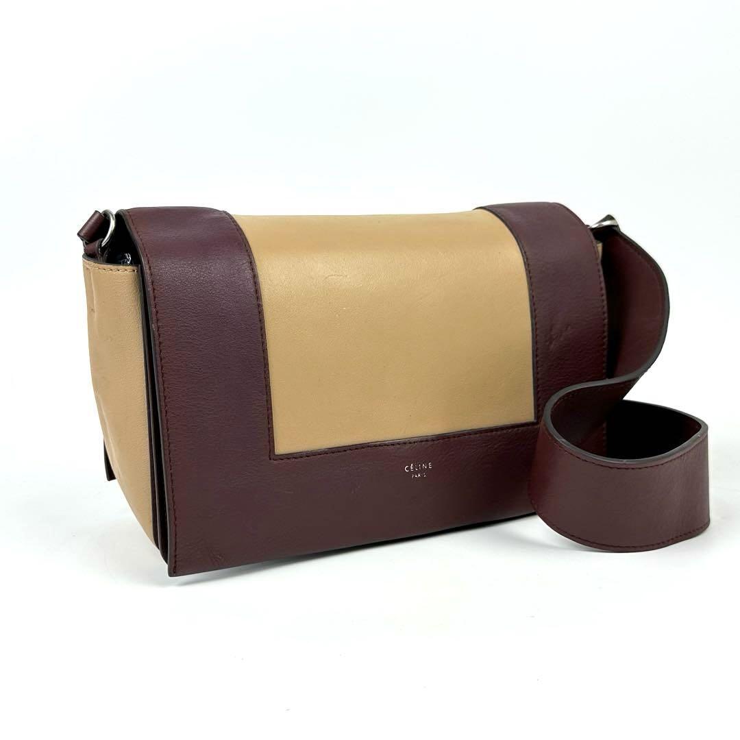 - 【美品】CELINE セリーヌ ミディアム フレーム ショルダーバッグ バイカラー ポシェット 斜め掛け レザー ボルドー ベージュ フォーマル