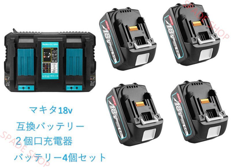 - 【5点セット】 NO.1 マキタ MAX 18v6.0Ah互換バッテリー BL1860B×4個6.0Ah BL1860 2口充電器(DC18RD YX-DC18RD)セット